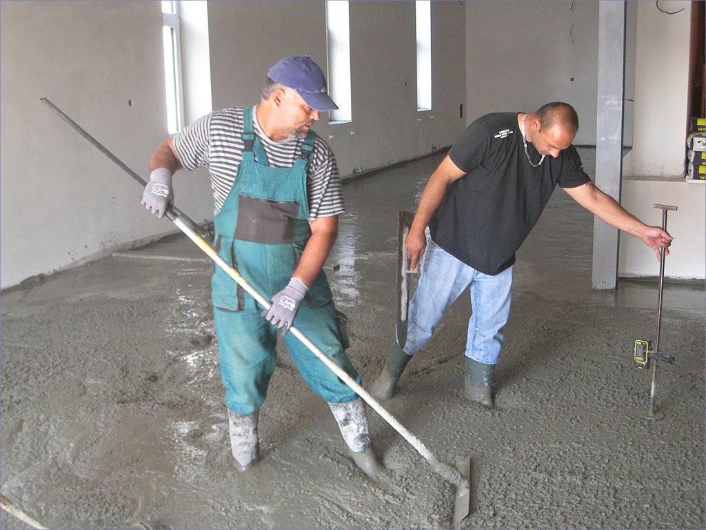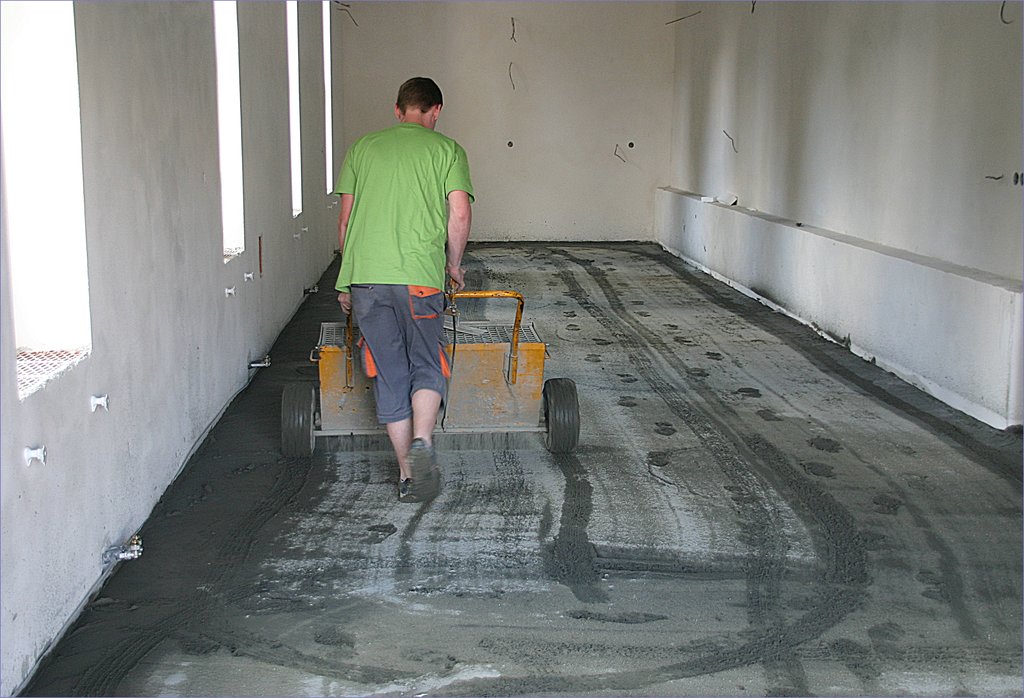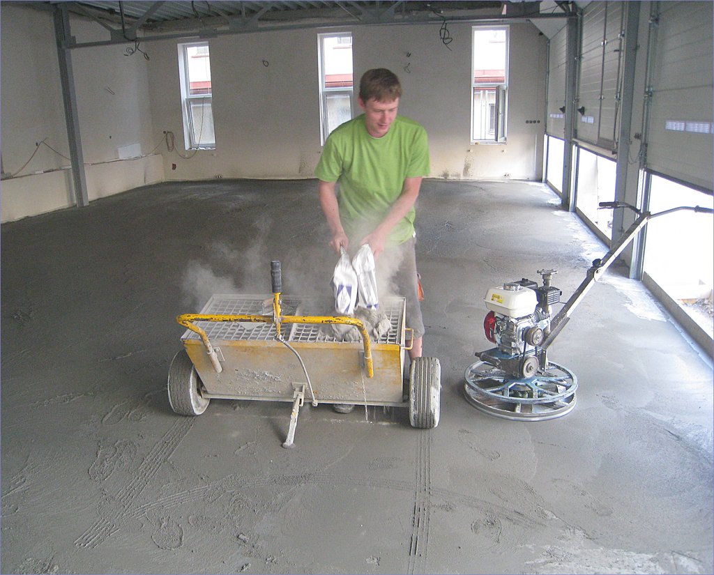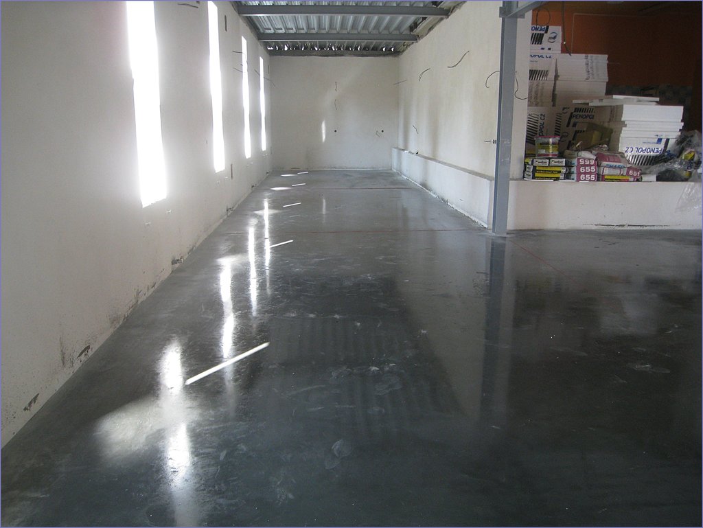 Betonové podlahy s povrchovou úpravou pomocí vsypu - broušené podlahy, samonivelační cementové potěry.